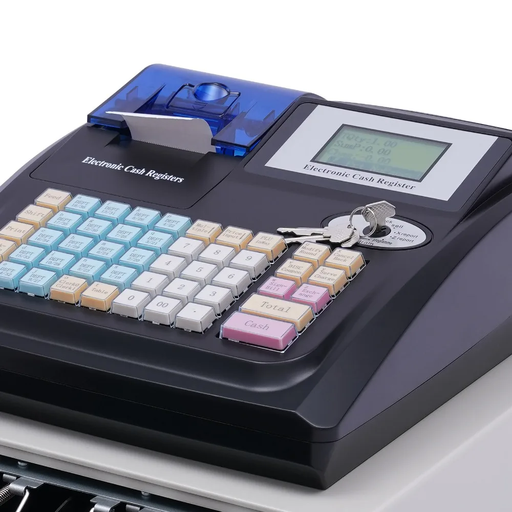 Gran capacidad:La caja registradora incluye 36 departamentos, 10000 PLU y 50 ID de empleados.Una máquina puede satisfacer múltiples necesidades.