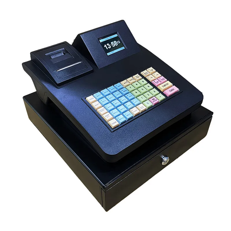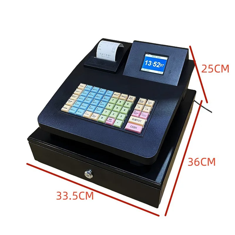 Caja registradora electrónica en inglés, supermercado, venta al por menor, catering, caja registradora ECR con impresora térmica de recibos de 58mm